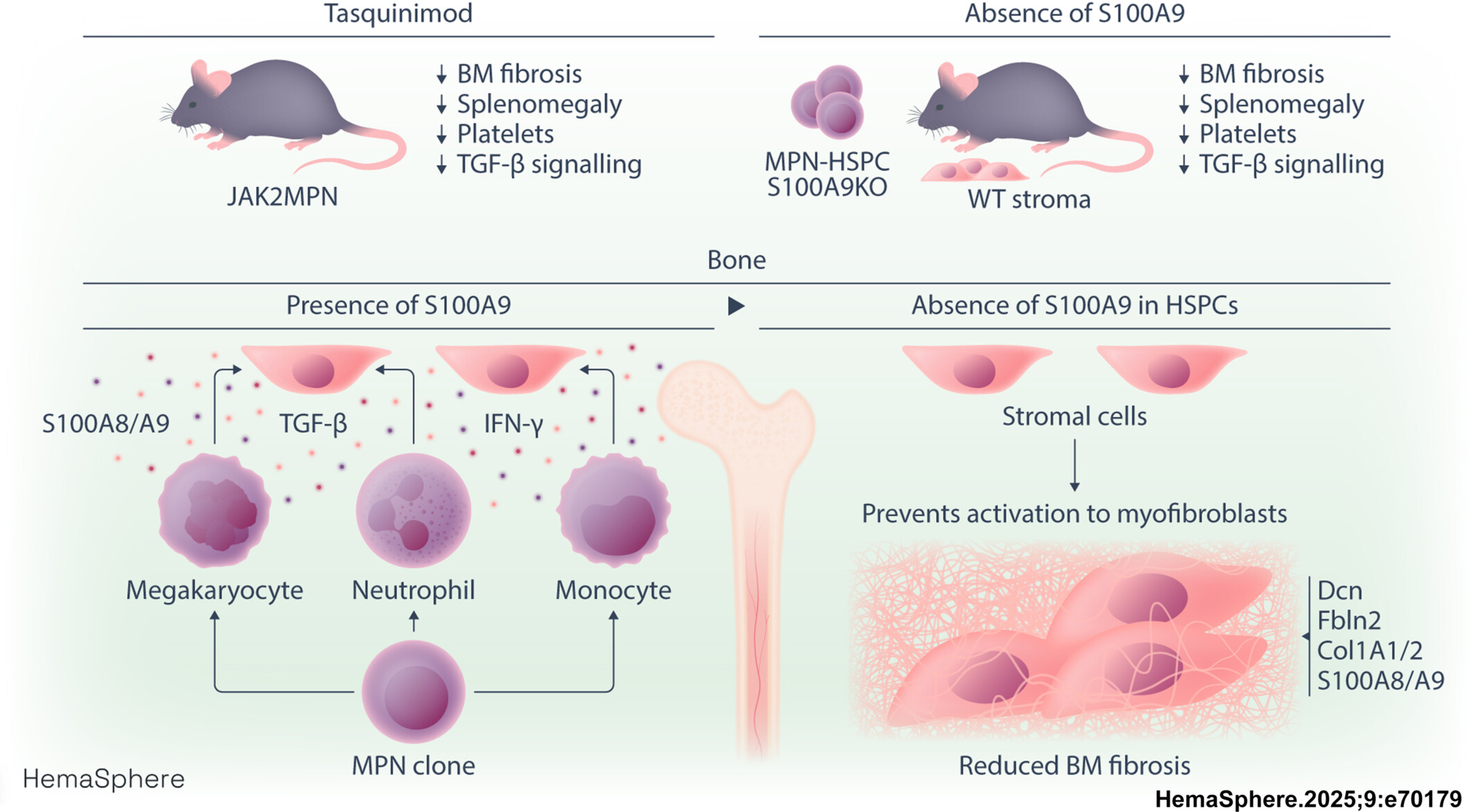 Konkret zeigte sich, dass Tasquinimod in JAK2 V617F-mutierten Zellen – typisch für PMF – die Proliferation und mTORC-Signalwege hemmte, die Apoptose erhöhte und so die fibrotische Umprogrammierung von Megakaryozyten und Monozyten umkehrte. Dadurch wurde die Aktivierung der stromalen Zellen im Knochenmark deutlich reduziert.
